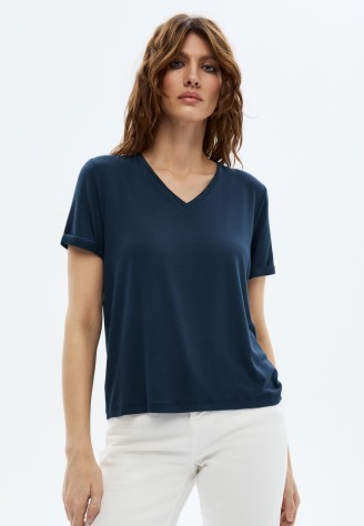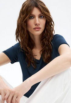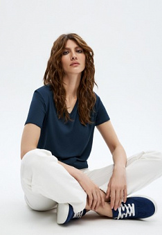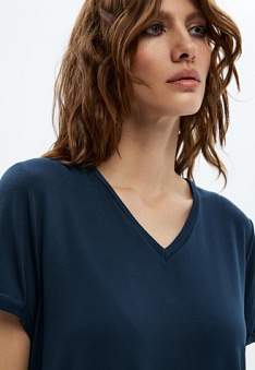 Женская футболка, цвет синий Фаберлик артикул - СТ_9775, весом 130 гр. цена - 1199 руб., выбрав из 4 размеров (от XS (42) до XXL (52)), с доставкой в пункты выдачи Faberlic, постаматы Рickpoint и отделения почты России
