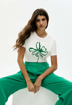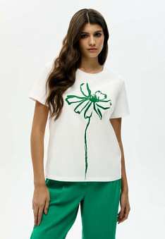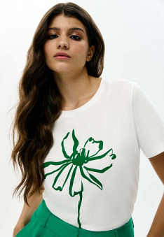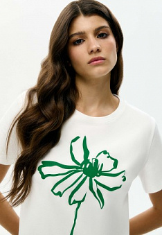 Женская футболка «Цветы», принт «Астра» Фаберлик артикул - СТ_9851, весом 151 гр. цена - 1399 руб., выбрав из 4 размеров (от XS (42) до XXL (52)), с доставкой в пункты выдачи Faberlic, постаматы Рickpoint и отделения почты России