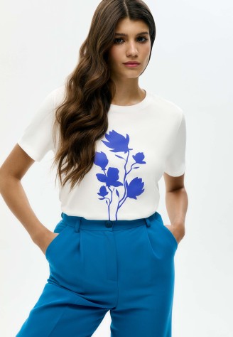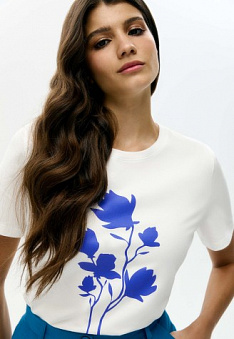 Женская футболка «Цветы», принт «Магнолия» Фаберлик артикул - СТ_9853, весом 151 гр. цена - 1399 руб., выбрав из 4 размеров (от XS (42) до XXL (52)), с доставкой в пункты выдачи Faberlic, постаматы Рickpoint и отделения почты России