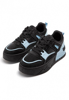 Женские кроссовки на массивной подошве, цвет черный/голубой
