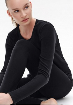 Женские легинсы выполнены из мягкого вискозного трикотажа в мелкий рубчик.