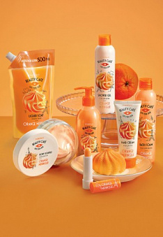 Деликатное жидкое мыло «Апельсиновая меренга» бережно очищает кожу, не пересушивая её благодаря мягкой формуле.