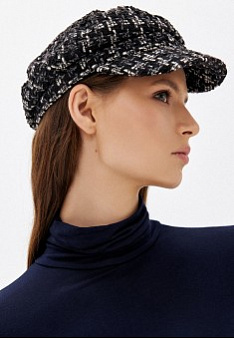 Несмотря на сдержанную чёрно-белую камму, кепи поможет расставить правильно акценты в вашем образе.
