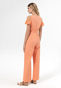 Комбинезон с вышивкой на рукавах, цвет персиковый