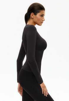 Корректирующий лонгслив-полуграция помогает моделировать необходимые области, скрыть несовершенства и подчеркнуть достоинства.