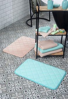 Изделие из мягкого стеганного полотна имеет антискользящее покрытие снизу, а гладкая поверхность коврика мгновенно впитывает влагу, быстро высыхает и не накапливает загрязнения. Яркий компактный аксессуар подходит даже для небольших помещений.