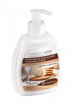 Крем-мыло для кухни, устраняющее запахи, отлично отмывает загрязнения, не сушит кожу рук и окутывает восхитительным ароматом свежесваренного кофе с аппетитным тирамису.