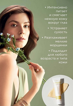 - Интенсивно питает и смягчает нежную кожу вокруг глаз