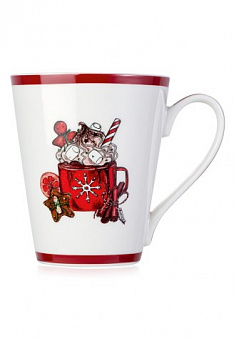 Белоснежная кружка с ярким праздничным рисунком и красной окантовкой поднимет настроение и станет отличным дополнением к сервировке семейного стола, замечательным подарком для ваших родных и друзей или вашим верным товарищем в офисе.