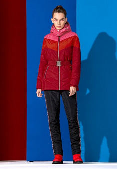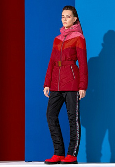 - Полуприлегающий силуэт, воротник стойка, два боковых прорезных кармана с застёжкой на молнию, пояс из резинки.