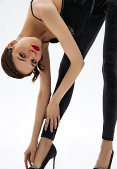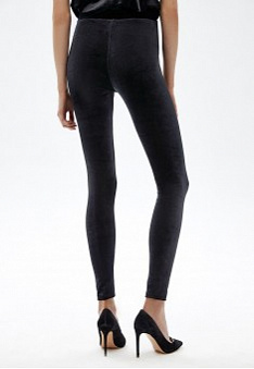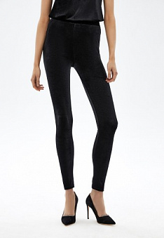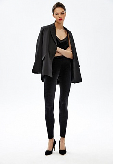 Легинсы из струящегося велюра будут гармонично смотреться как в составе офисного образа, так и вечернего.