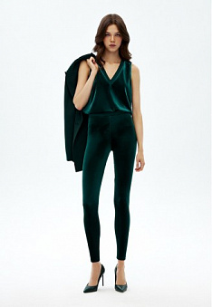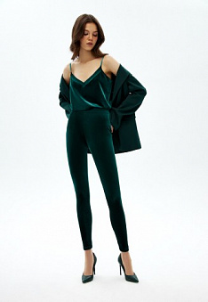 Легинсы из струящегося велюра будут гармонично смотреться как в составе офисного образа, так и вечернего.
