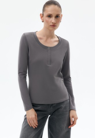 Лонгслив женский с планкой, цвет графитовый Фаберлик артикул - СТ_9894, весом 168 гр. цена - 1699 руб., выбрав из 4 размеров (от XS (42) до L (48)), с доставкой в пункты выдачи Faberlic, постаматы Рickpoint и отделения почты России