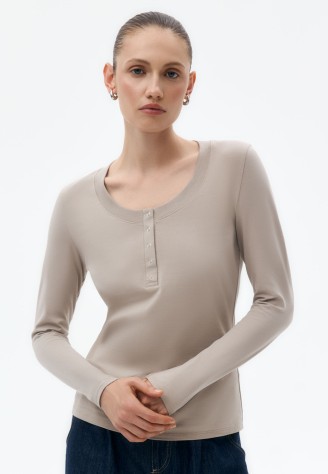 Лонгслив женский с планкой, цвет какао Фаберлик артикул - СТ_9893, весом 168 гр. цена - 1699 руб., выбрав из 4 размеров (от XS (42) до XXL (52)), с доставкой в пункты выдачи Faberlic, постаматы Рickpoint и отделения почты России