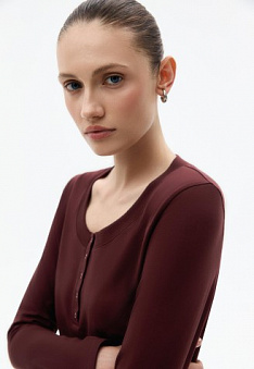 Лонгслив женский с планкой, цвет вишнево-шоколадный Фаберлик артикул - 871068-871073, весом 168 гр. цена - 1699 руб., выбрав из 4 размеров (от XS (42) до XXL (52)), с доставкой в пункты выдачи Faberlic, постаматы Рickpoint и отделения почты России