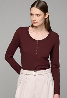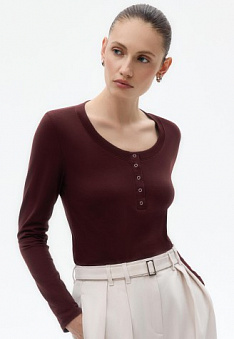 Лонгслив женский с планкой, цвет вишнево-шоколадный Фаберлик артикул - СТ_9897, весом 168 гр. цена - 1699 руб., выбрав из 4 размеров (от XS (42) до XXL (52)), с доставкой в пункты выдачи Faberlic, постаматы Рickpoint и отделения почты России