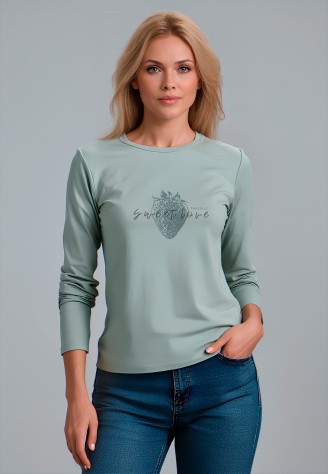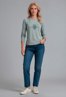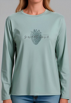 Лонгслив с принтом «Sweet love», цвет серая мята Фаберлик артикул - СТ_10235, весом 156 гр. цена - 1499 руб., выбрав из 4 размеров (от XS (42) до XXL (52)), с доставкой в пункты выдачи Faberlic, постаматы Рickpoint и отделения почты России