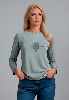 Лонгслив с принтом «Sweet love», цвет серая мята Фаберлик артикул - 930295-930300, весом 156 гр. цена - 1499 руб., выбрав из 4 размеров (от XS (42) до XXL (52)), с доставкой в пункты выдачи Faberlic, постаматы Рickpoint и отделения почты России