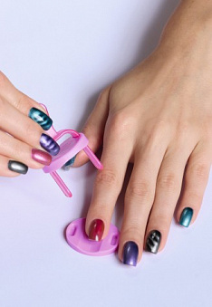 - Специальный пигмент в составе лаков реагирует на воздействие магнита и формирует узор на поверхности ногтя