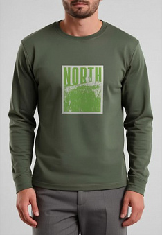 Мужской свитшот-лонгслив с принтом «North», цвет хаки Фаберлик артикул - 892130-892134, весом 272 гр. цена - 1799 руб., выбрав из 3 размеров (от S (46) до XXL (54)), с доставкой в пункты выдачи Faberlic, постаматы Рickpoint и отделения почты России