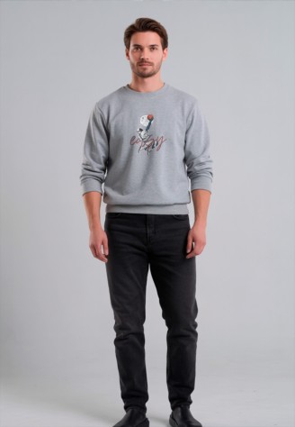 FB-SS-M-01-LG0038 Мужской свитшот с принтом «Easy», цвет светло-серый меланж, размер L