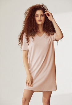 Ночная сорочка с V-образным вырезом горловины подарит удобство и не стеснит движений.