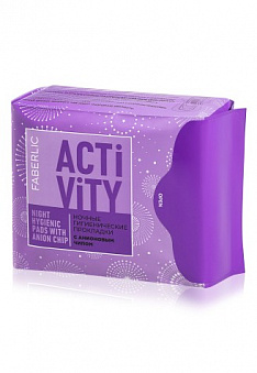 Ночные гигиенические прокладки с анионовым чипом Фаберлик артикул - 11295, весом 64 гр. из серии - Activity, цена - 239 руб., с доставкой в пункты выдачи Faberlic, постаматы Рickpoint и отделения почты России
