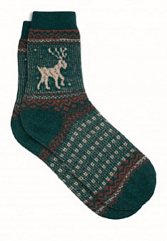 Носки шерстяные с принтом «Олень», цвет зеленый