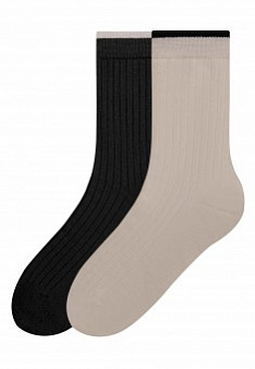 Носки в рубчик из хлопка, 2 пары, цвет бежевый/черный