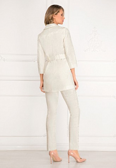 - Воротник с прямоугольными лацканами и двубортная застежка на пуговицы.