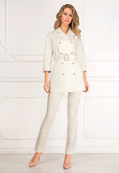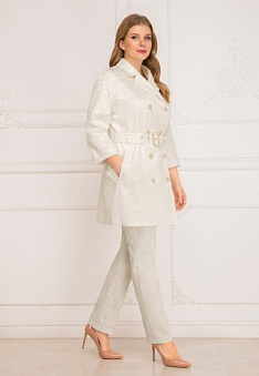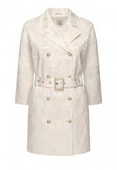 - Плащ полуприлегающего силуэта с поясом из жаккарда.