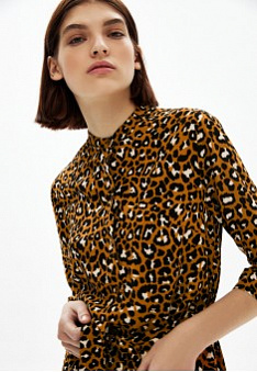 - Платье-рубашка из вискозы с анималистическим принтом.