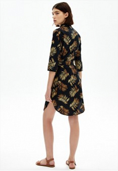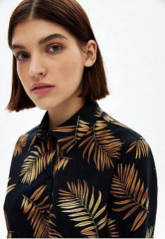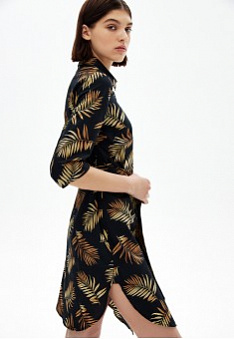 - Платье-рубашка с поясом из хлопка с флоральным орнаментом.
