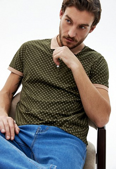 Поло с принтом для мужчины, цвет хаки Фаберлик артикул - СТ_7553, цена - 1499 руб., выбрав из 5 размеров (от 46 до 58), с доставкой в пункты выдачи Faberlic, постаматы Рickpoint и отделения почты России