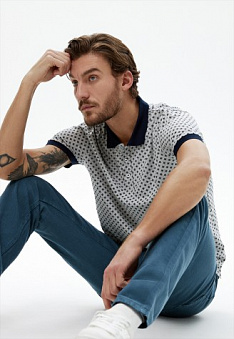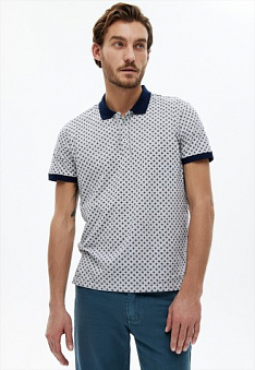 - Трикотажное поло из хлопка с мелкоузорчатым орнаментом.