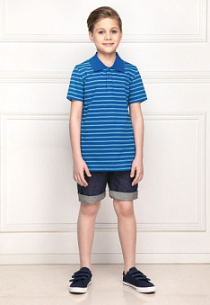 Поло в полоску для мальчика, цвет ярко-голубой