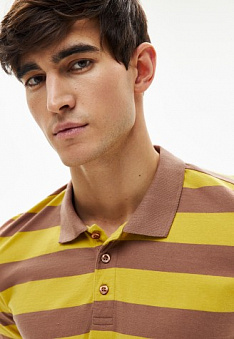 Поло в полоску для мужчины, цвет темно-бежевый Фаберлик артикул - СТ_8146, цена - 1199 руб., выбрав из 5 размеров (от 46 до 4XL (58)), с доставкой в пункты выдачи Faberlic, постаматы Рickpoint и отделения почты России
