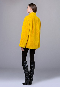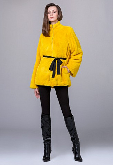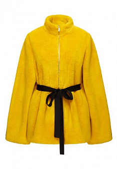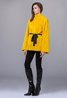 Полушубок из экомеха с поясом, цвет желтый