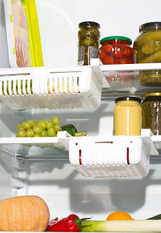 Не хватает места в холодильнике? Раздвижной контейнер освободит место на полках и увеличит пространство для хранения.