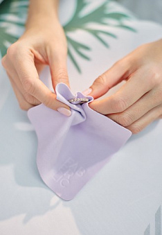 Салфетка изготовлена из рассеченного микроволокна - микрофибры. Предназначена для мягкой очистки и полировки ювелирных украшений из золота и серебра, а также драгоценных камней.