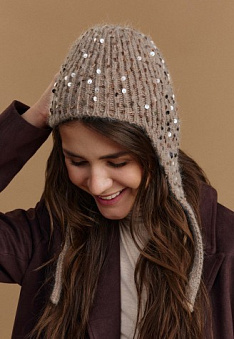 Шапка с пайетками, цвет бежевый