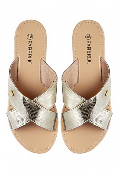 Шлёпанцы Rebeca, цвет золотой Фаберлик весом 249 гр. из серии - Минимализм, цена - 1000 руб., с доставкой в пункты выдачи Faberlic, постаматы Рickpoint и отделения почты России