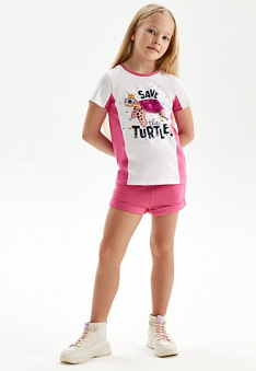 Шорты из футера для девочки, цвет розовый Фаберлик артикул - СТ_8180, цена - 899 руб., выбрав из 7 размеров (от 104 до 152), с доставкой в пункты выдачи Faberlic, постаматы Рickpoint и отделения почты России