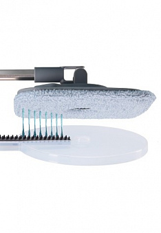 - Быстрая очистка насадки: специальная встроенная щеточка легко удаляет с салфетки из микрофибры волосы, шерсть и мелкий мусор