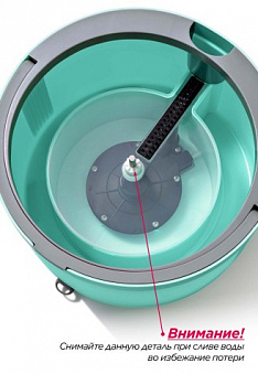 - Инновационная система разделения воды: при надавливании из внутреннего резервуара с чистой водой струи воды поднимаются наверх, промывая швабру, а грязная вода сливается в отдельный внешний отсек ведра, из которого потом ее можно слить через специальное отверстие