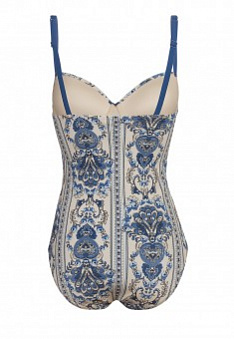 Cочетание цветов в слитном купальнике Terra – будто синее море омывает белый песок. Окунись в атмосферу неги и блаженства, представь себя на берегу океана!