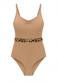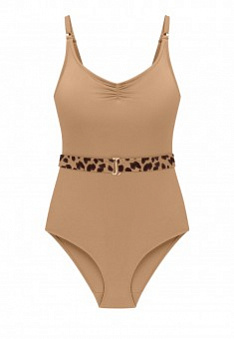 Слитный купальник с анималистичным принтом – элегантная модель со съёмными формованными чашками без косточек. Специальная конструкция и дополнительная вставка из сетки на внутренней части купальника создает легкий корректирующий эффект в области живота и бедер. Регулируемые бретели.