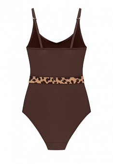 Слитный купальник с анималистичным принтом – элегантная модель со съёмными формованными чашками без косточек. Специальная конструкция и дополнительная вставка из сетки на внутренней части купальника создает легкий корректирующий эффект в области живота и бедер. Регулируемые бретели.