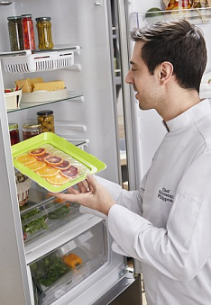 - Благодаря прочной плёночной крышке создаётся эффект вакуума, что позволяет дольше сохранять продукты свежими.