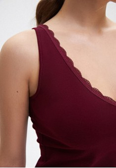 Топ из хлопка с кружевом, цвет бордовый Фаберлик артикул - 920071 - 920076, весом 87 гр. цена - 749 руб., с доставкой в пункты выдачи Faberlic, постаматы Рickpoint и отделения почты России
